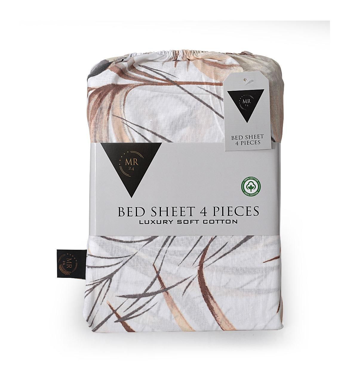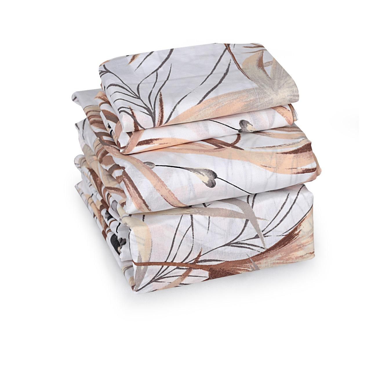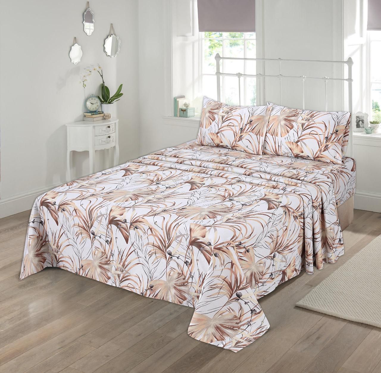 Luxury Beige Tropical Leaf Print 100% Cotton Queen Bed Sheet