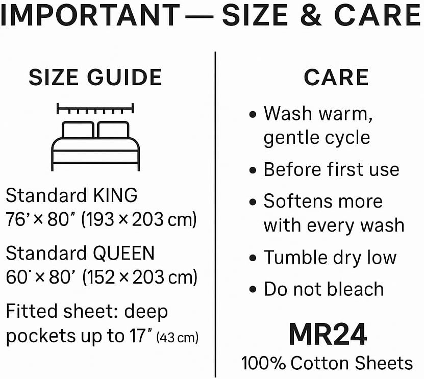 About this item 100% Cotton King Bed Sheets – Cooling, Breathable & Soft Experience refreshing comfort with MR24’s 100% cotton... Read more