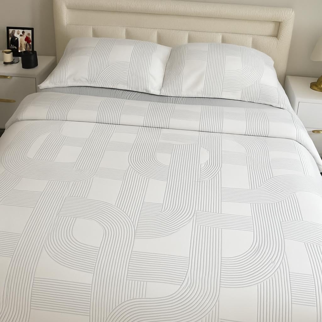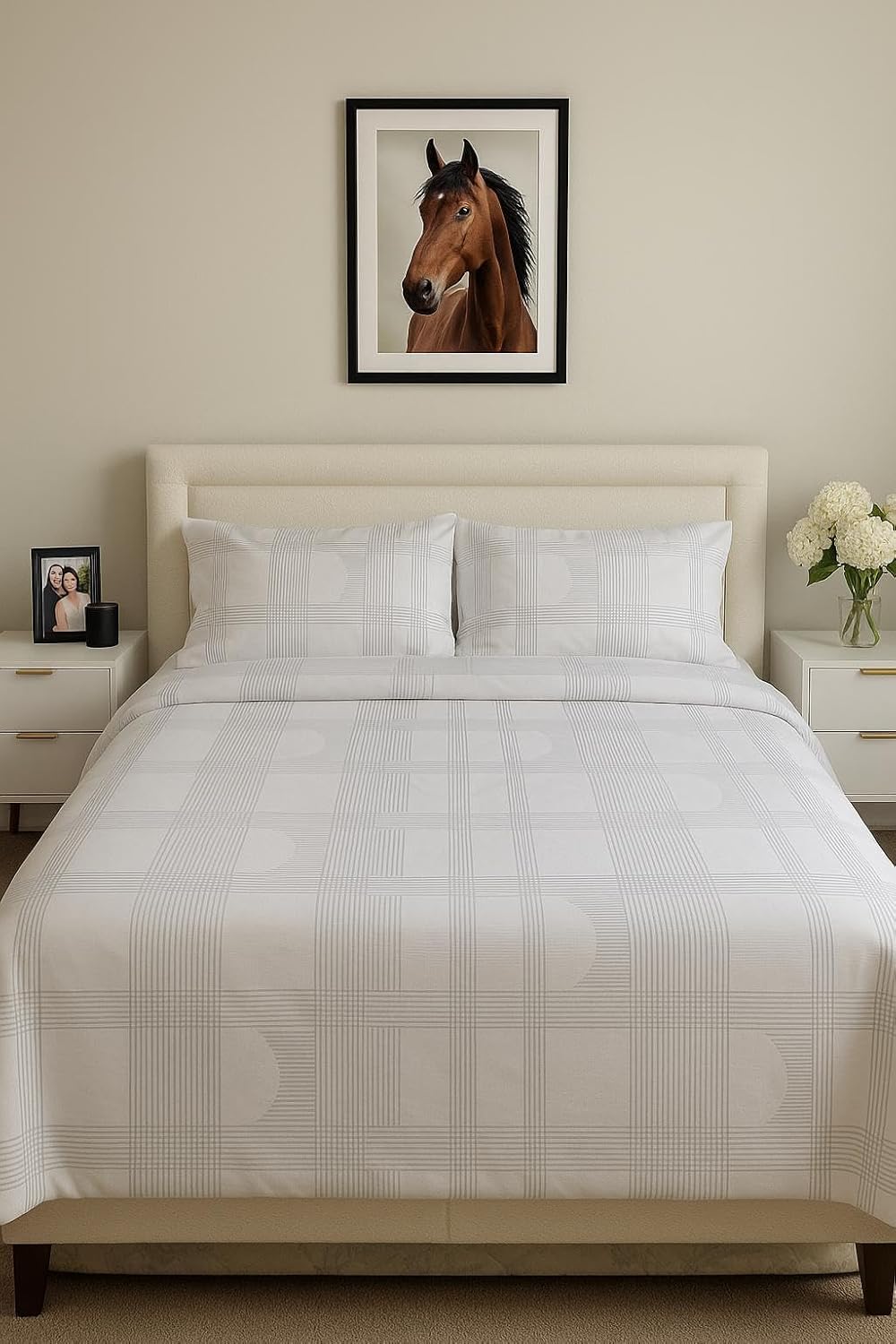 MR24 Queen Size Bed Sheets Set | Draps Queen Motif Géométrique Blanc | 100% Cotton